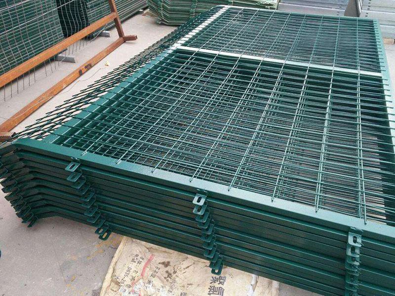 通線2012-8002防護柵欄分為兩種。一種是用在鐵路通線橋下的隔離網是跟根據鐵路橋下防護柵欄2012(8002)標準來生產制作的,鐵路防護柵欄的金屬網片規格為2760*1700mm、絲徑為4.0mm、網孔為75*150mm、邊框為Q235材質的30*50*2.0mm矩管,然后加工成型后整體熱鍍鋅浸塑進行防腐處理。第二種是用在鐵路通線倆側的隔離網是根據鐵路線路防護柵欄通線(2012)8001標準來生產制作的,鐵路防護柵欄的金屬網片規格為2760*1797mm、絲徑為4.0mm、網孔為75*150mm、邊框為Q235材質的30*50*2.0mm矩管帶有30度折彎,然后加工成型后整體熱鍍鋅浸塑進行防腐處理。