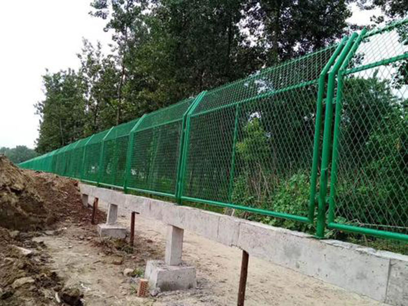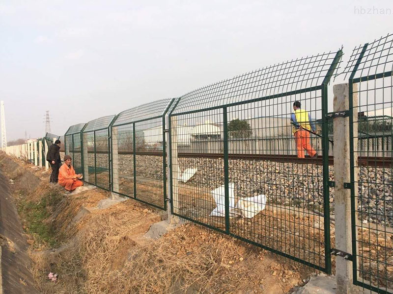 產(chǎn)品材質(zhì)及工藝:內(nèi)部采用HPB300冷拔低碳鋼絲與Q235矩管邊框;焊接完畢后,表面采用整體熱鍍鋅后浸塑處理,浸塑粉末一般采用墨綠、表面光滑、平整、日久抗腐蝕、抗紫外線的特性。鐵路防護(hù)柵欄是鐵路的安全設(shè)施安裝工程,主要應(yīng)用在鐵路軌道兩側(cè),用來防止來往的行人接近軌道及來往的火車,以保證行人的人身安全。因此,鐵路防護(hù)柵欄無論在技術(shù)上還是在質(zhì)量上都比其他隔離柵要求更加嚴(yán)格。鐵路防護(hù)柵欄采用立柱混凝土澆筑件,工程造價低,強(qiáng)度高,整體穩(wěn)定性好,適合大面積采用。